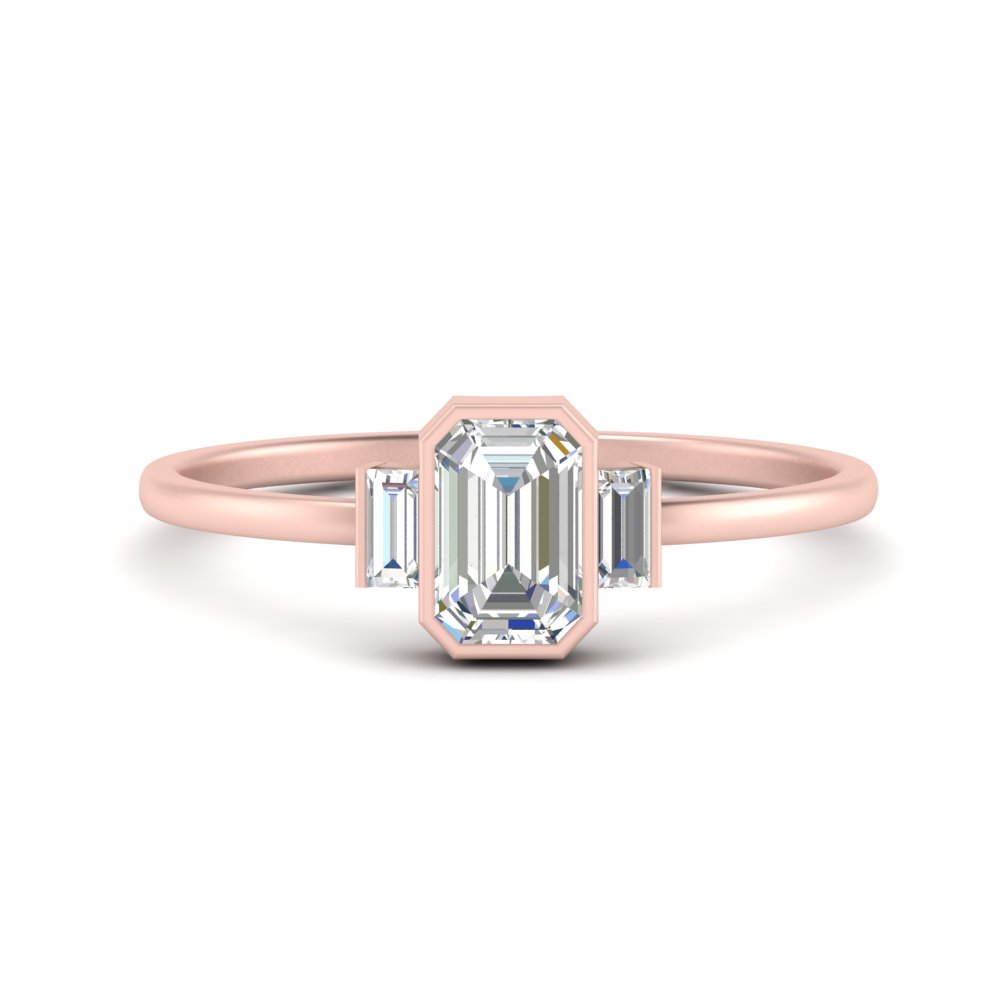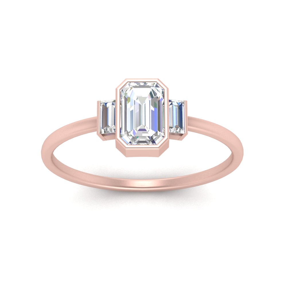 "Worn With Meaning" Sterling Silver Bezel Three Stone Emerald Cut Ring